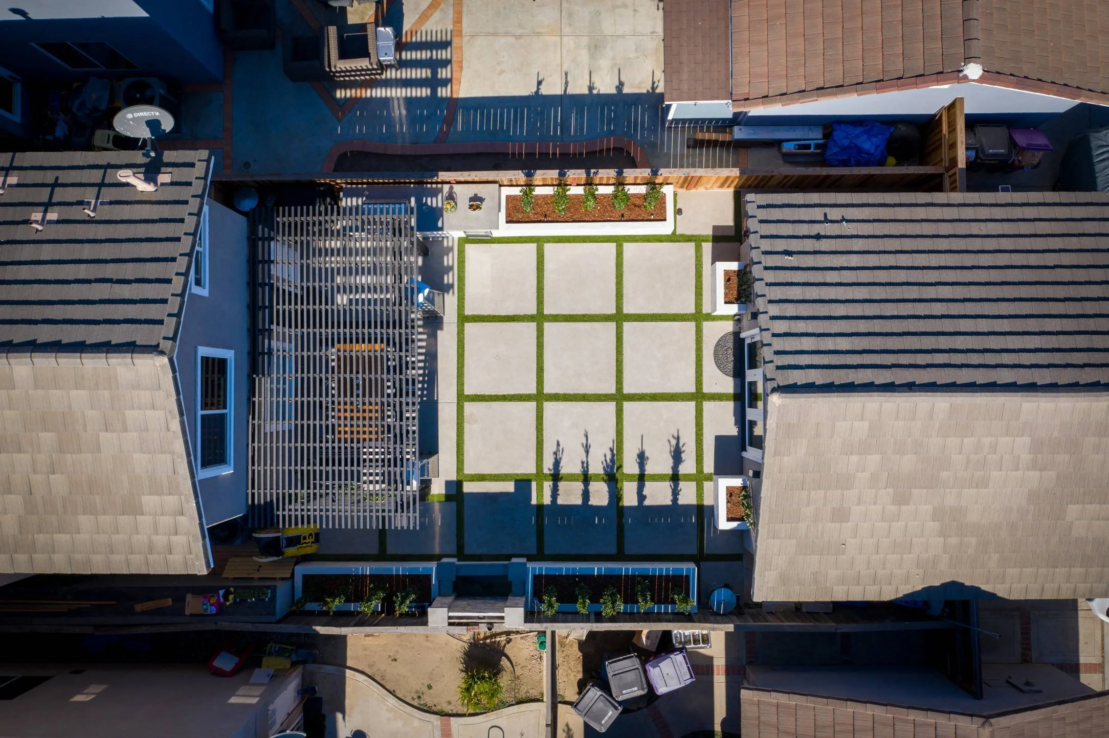 (drought-tolerant plants, shrubs, basic trees)Artificial turf or sod installation